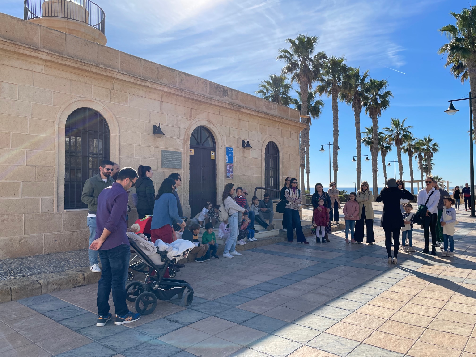 En un soleado día de invierno, con unas vistas espectaculares del mar Mediterráneo, las familias roqueteras han disfrutado de una nueva visita teatralizada marinera, en la que se han sumergido en la riqueza cultural del municipio vinculada con el mar. Ha sido un delicioso viaje por el Faro, el Castillo de Santa Ana y el Puerto, para atracar en el Aula del Mar. Y, de nuevo, se han llenado todas las entradas, gratuitas, para esta actividad enmarcada en el programa de dinamización ‘La mar de divertida’ del Aula del Mar de Roquetas de Mar, organizado por el Área de Turismo y Playas del Ayuntamiento, y producido por Contraportada y Asiento Vip.