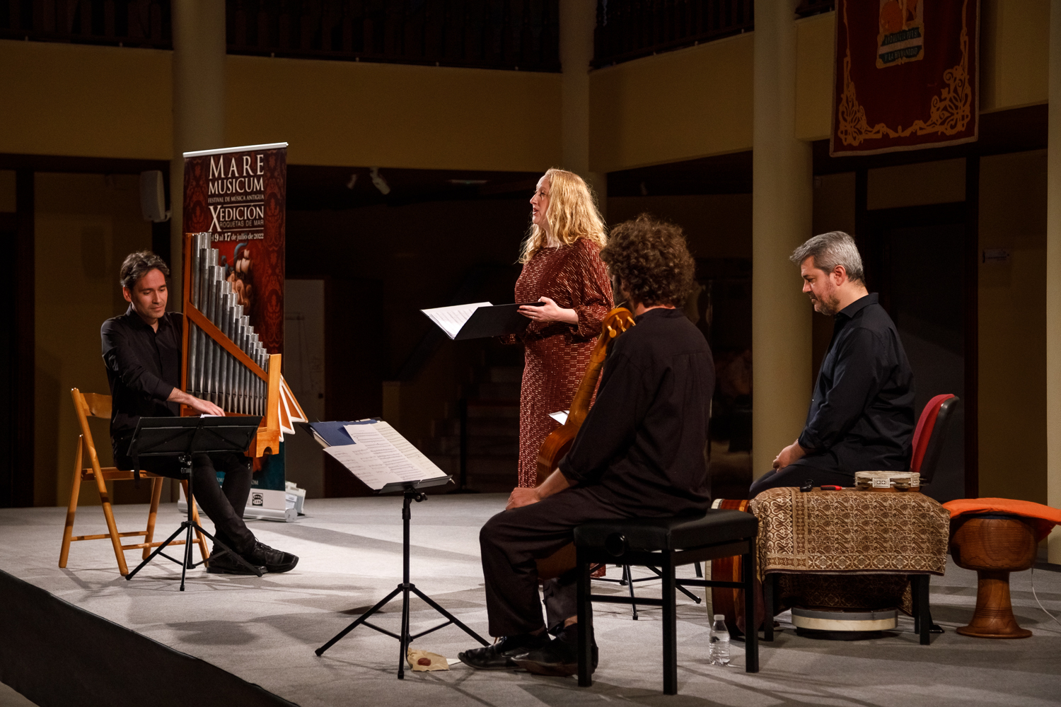 Con una formación compuesta por organetto, fídula, soprano y percusiones, el grupo dirigido por Guillermo Pérez, puso en escena una variada selección de composiciones basadas en motetes, estampies y secuencias escritas durante los años 1250-1300, algunas de ellas recogidas en los manuscritos ‘El Códice de Montpellier’, y ‘El Manuscrito de Las Huelgas’.