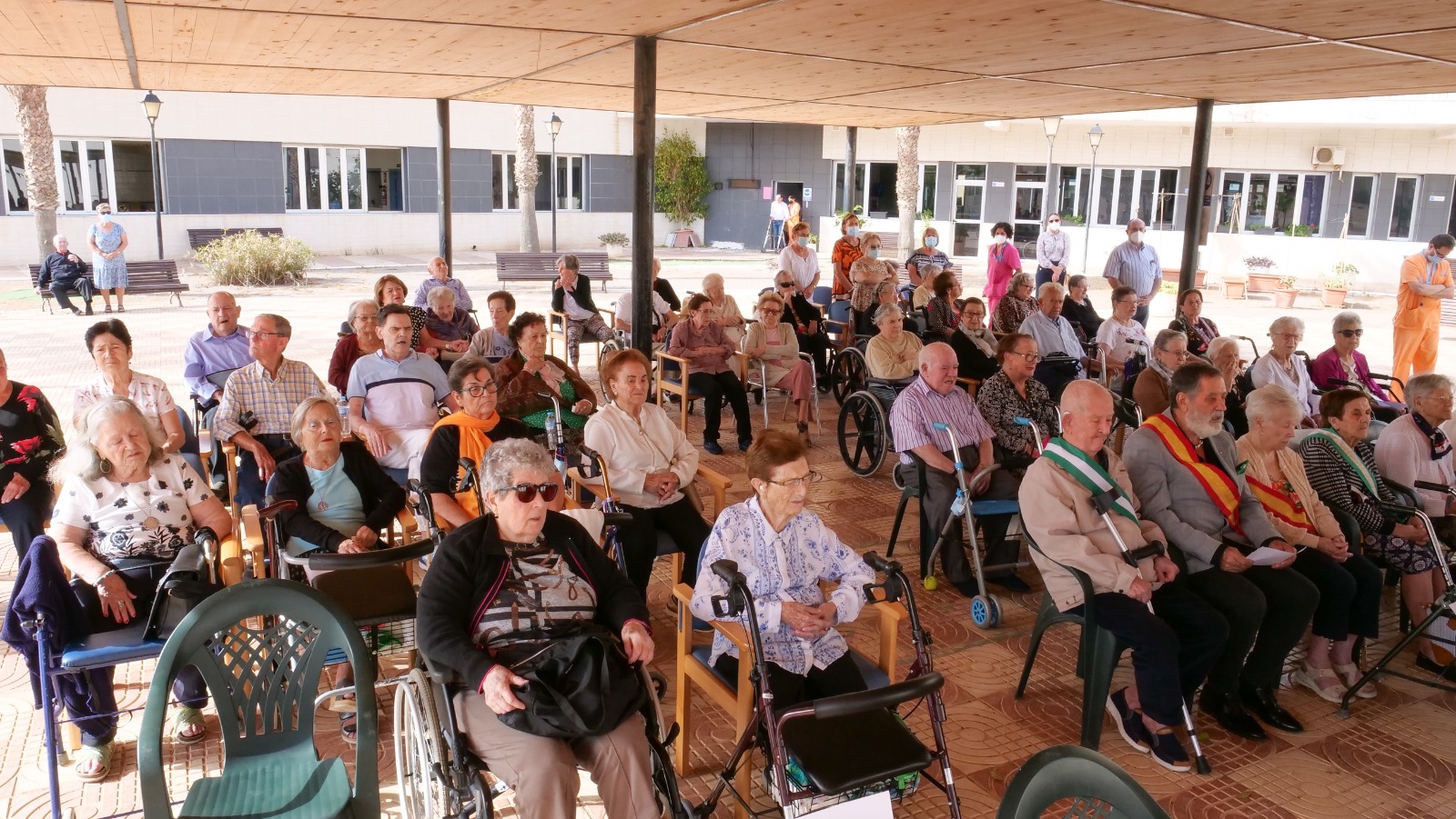 La Residencia Virgen del Rosario de Roquetas de Mar ha celebrado su tradicional eucaristía en honor a la patrona de este municipio en el patio exterior de este centro. El alcalde, Gabriel Amat, acompañado por el concejal Gobierno interior y Promoción Cultural y Deportiva, José Juan Rodríguez, la concejal de Servicios Sociales, Loles Moreno, la concejal del Mayor, Mari Ángeles Alcoba junto con la concejala de Hacienda, Mayte Fernández y el concejal de Educación, Cultura y Juventud, Juan Carlos Muyor, han asistido a esta misa para acompañar a los usuarios de este centro que cada año y, con motivo de esta festividad, participan en esta eucaristía como muestra de fe y devoción a la Virgen del Rosario.