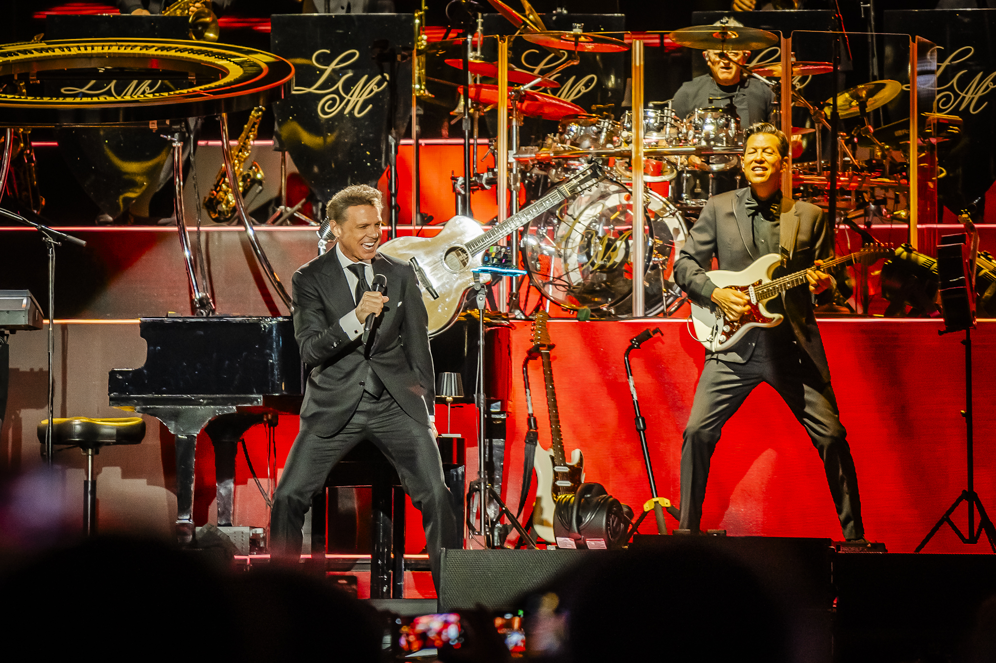 Sin apenas tiempo entre tema y tema, la Orquesta no paraba de sonar. Llegaría luego ‘Amor, amor, amor’, y continuó Luis Miguel siempre con su eterna sonrisa con temas como ‘Suave’, ‘Culpable o no’, ‘Te necesito’, ‘Hasta que me olvides’ y ‘Dame’.