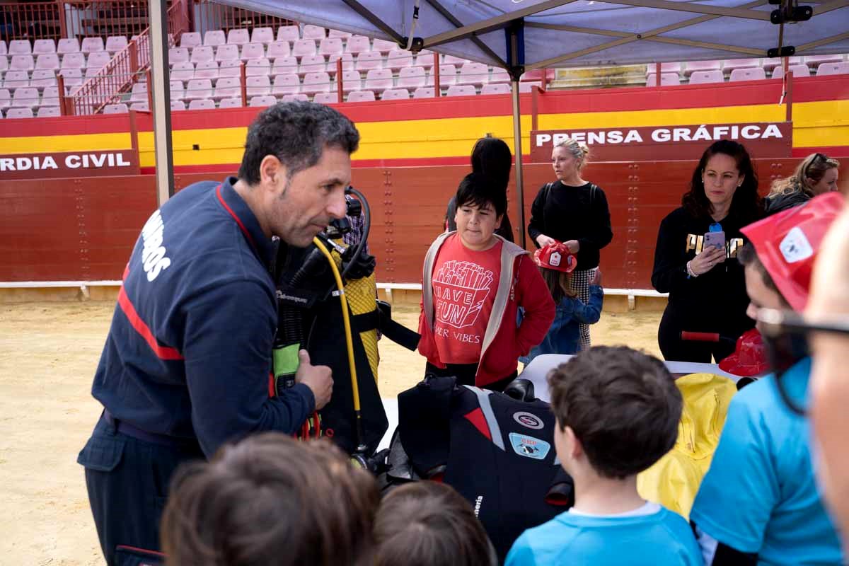 La mañana ha comenzado con una espectacular exhibición de rescate en altura, que ya ha llenado la Plaza y sus alrededores, donde se podían ver media docena de vehículos del Consorcio que han hecho las delicias de los más pequeños. A las 11.30 horas han comenzado los talleres de Reanimación Cardio Pulmonar (RCP), taller de incendio en hogar y una demostración de descarcelación en accidente de tráfico que ha llenado los asientos de la plaza de Toros. Las actividades han contado con la colaboración de los servicios sanitarios del 061.
