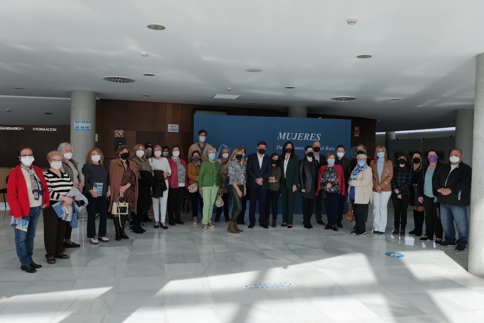 Entre las actividades programadas con motivo del 8M, destaca la visita guiada que las distintas asociaciones de mujeres del municipio han llevado a cabo a la exposición “Mujeres”, que durante todo el mes de marzo permanece expuesta en el Teatro Auditorio de Roquetas de Mar. Se trata de una muestra de la ilustradora y directora de fotografía audiovisual, Isabel Ruiz Ruiz, en la que se pretende dar visibilidad a un total de 90 mujeres referentes en distintas disciplinas artísticas, culturales o científicas a lo largo de la historia y, cuya labor, ha supuesto un gran avance para la sociedad, la cultura y el progreso científico.