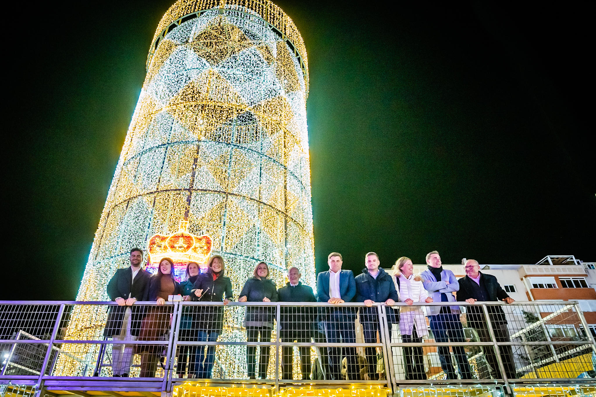 El alcalde de Roquetas de Mar, Gabriel Amat, pulsó el botón del inicio oficial de las fiestas con una iluminación navideña que cuenta con cerca de 750.000 bombillas de bajo consumo, 5 figuras 3D, 380 arcos, un faro de 25 metros de altura y 11 pinos