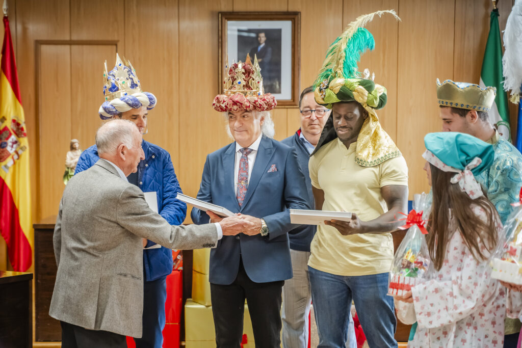 Los emisarios de los Reyes Magos de Oriente han  sido recibidos por el alcalde de Roquetas de Mar, Gabriel Amat, quien les ha entregado  recibir las coronas de Melchor, Gaspar y Baltasar.