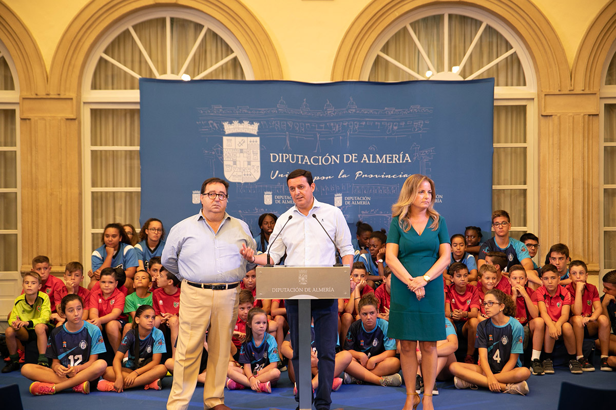 El presidente de la Diputación, Javier A. García, ha dado a conocer algunas de las principales claves de este gran acontecimiento deportivo. Ha estado acompañado por la diputada de Deportes, María Luisa Cruz, y por el concejal de Deportes y Tiempo Libre del Ayuntamiento de Roquetas de Mar, José Juan Rubí, así como por un nutrido grupo de alumnos de las Escuelas Deportivas de Roquetas de Mar de disciplinas como fútbol, baloncesto y voleibol.