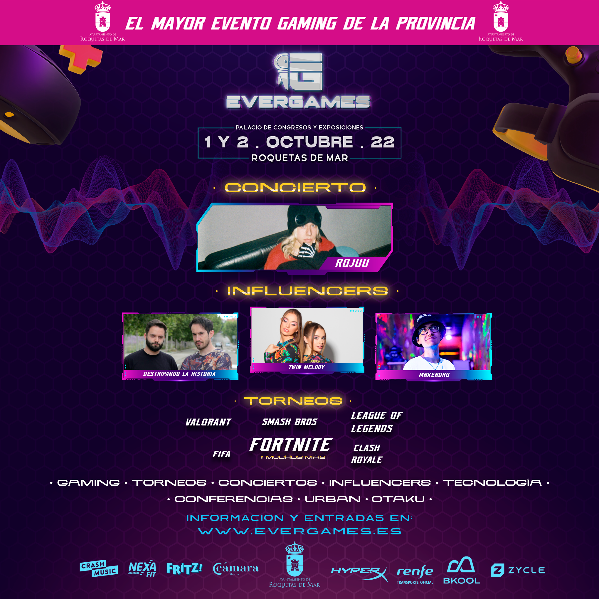 El Palacio de Congresos y Exposiciones de Aguadulce será la sede de la primera edición de Evergames, un evento organizado por el Ayuntamiento de Roquetas de Mar en colaboración con la productora almeriense Crash Music, que no solo convertirá al municipio roquetero en la capital española del gaming durante los días 1 y 2 de octubre, sino que, además, será el más inclusivo de todos cuantos se celebran en toda España a lo largo del año, gracias a la labor de la Fundación ‘Music For All’, una entidad que ya ha convertido a Cooltural Fest en el festival de música más inclusivo de Europa..