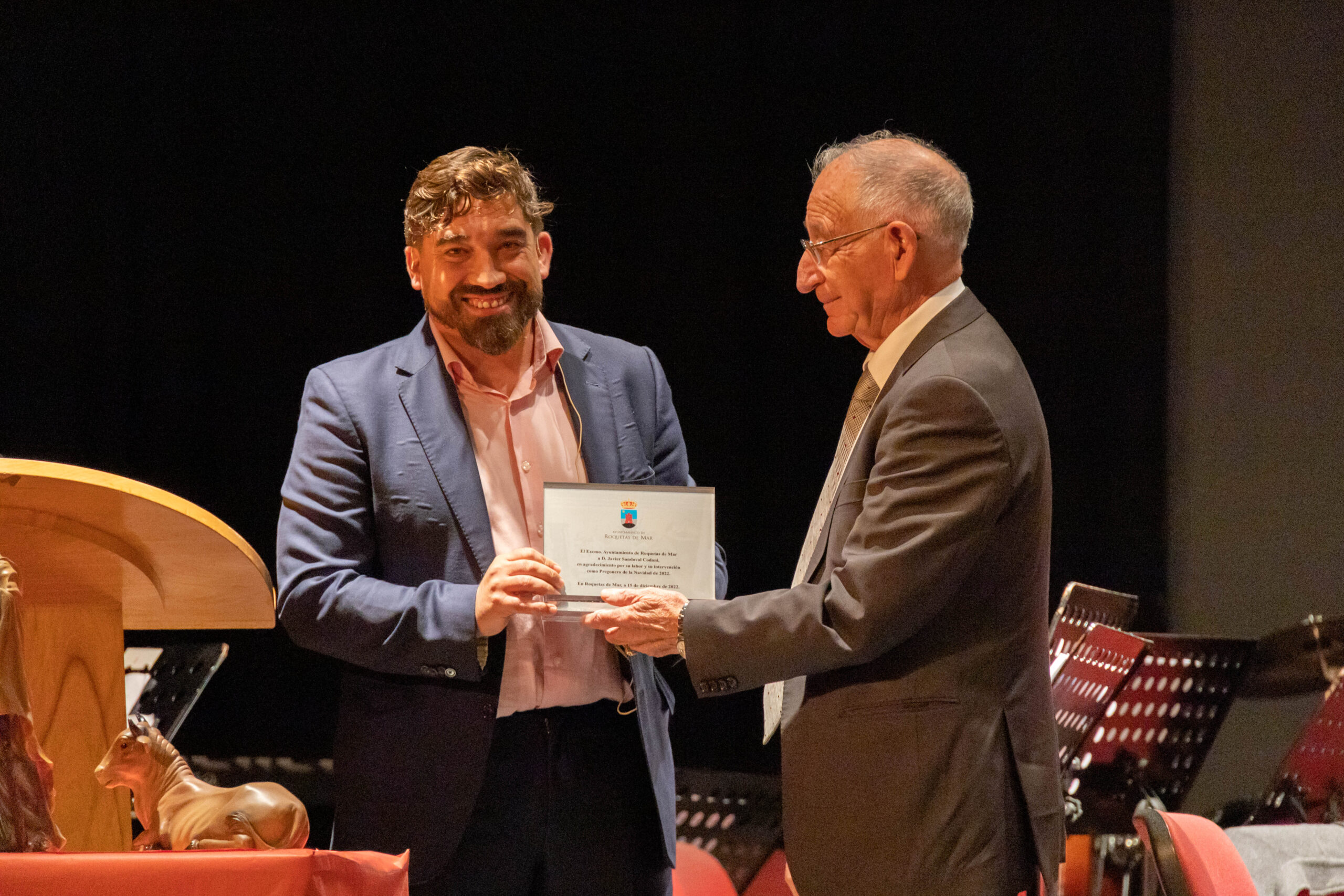 Por su parte, el alcalde de Roquetas entregó al pregonero, Javier Sandoval, una placa y le agradeció que hubiera dedicado el pregón de este año a “los momentos tan duros que se vivieron en la residencia, al sacrificio y esfuerzo que se llevó a cabo todo el personal y, en definitiva, al trabajo que hicisteis para que hoy y volvamos a vivir una feliz Navidad”.