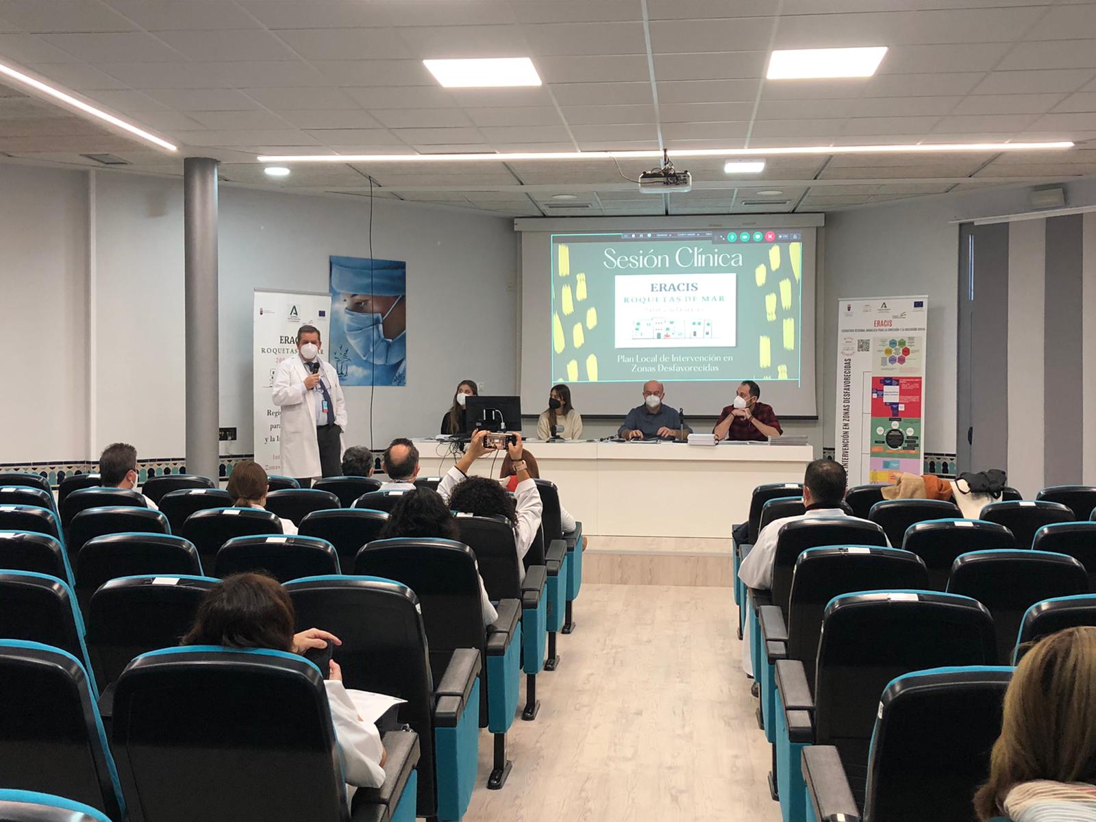 En esta sesión, se trasladó a los profesionales del hospital la metodología de la Eracis y la implementación del Plan Local de Intervención en Zonas Desfavorecidas hasta la fecha. Además, se expusieron los objetivos, las funciones y los proyectos que realiza la Mesa Sectorial de Salud y Juventud relacionados con el desarrollo comunitario y, las actuaciones sociosanitarias que se realizan en las zonas desfavorecidas, además de las coordinaciones que se llevan a cabo con el Servicio Andaluz de Salud y entidades sociales que trabajan en el municipio para la mejora de las condiciones sociales y de salud de la población.