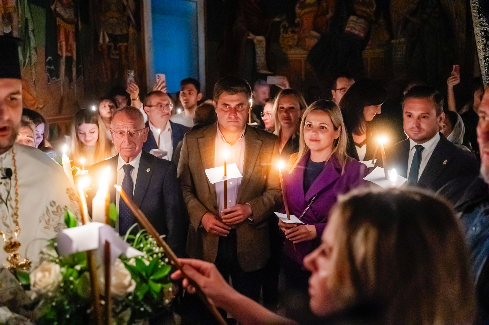 La tradición ortodoxa rumana dice que la liturgia comience con el templo a oscuras a las 12 de la noche del sábado, pero para coincidir con la hora de Rumanía, en Roquetas se adelanta una hora el anuncio de que Cristo ha resucitado y un cirio encendido que porta el sacerdote así lo simboliza.