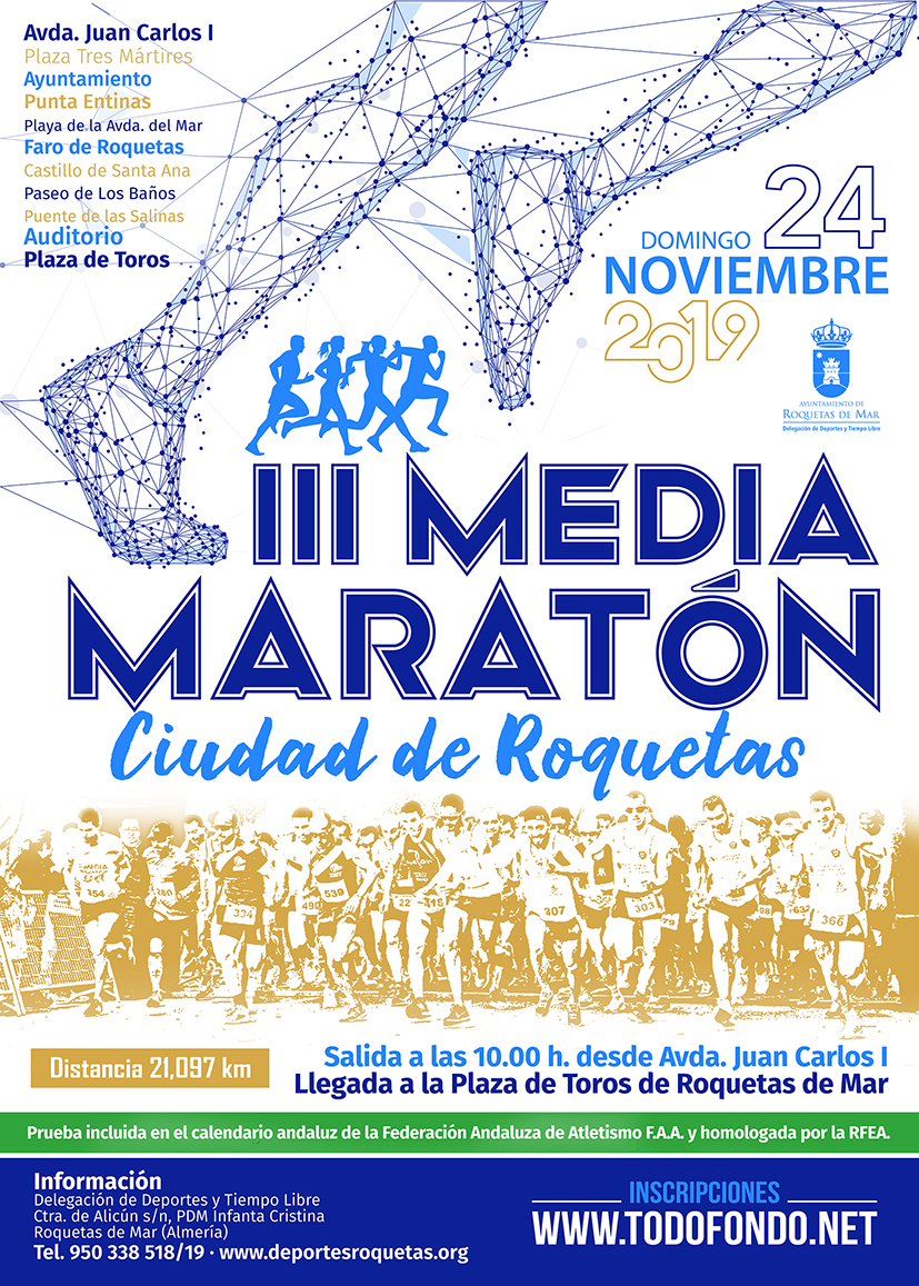 Concursos de fotografía y animación por primera vezAdemás, el Área de Deportes y Tiempo Libre ha tenido la iniciativa de establecer dos concursos para dinamizar y generar un ambiente festivo de la carrera. Se trata de una competición de animación `Animando a la Media Roquetera´ y otra de fotografía `Concurso de Fotografía Media Maratón Ciudad de Roquetas´.