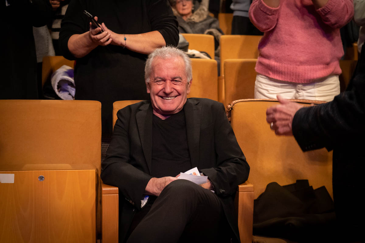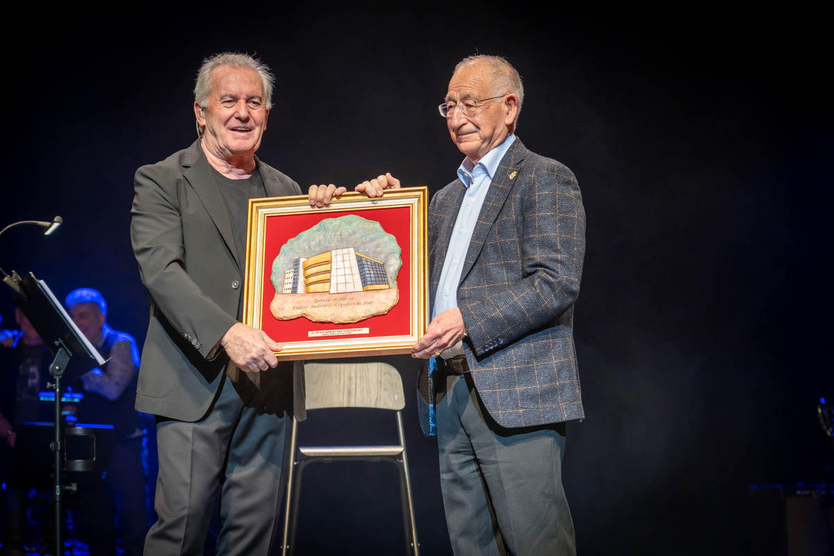 La gira 75 aniversario ‘La vida en canciones. El escenario lo cura todo’ del cantante Víctor Manuel pasó este sábado por el Teatro Auditorio de Roquetas de Mar. Lo hizo a lo grande, ya que el cantante asturiano estuvo cerca de dos horas y media sobre el escenario, y el colofón fue el descubrimiento de la butaca de honor que lleva su nombre ante un Auditorio que se llenó al completo.