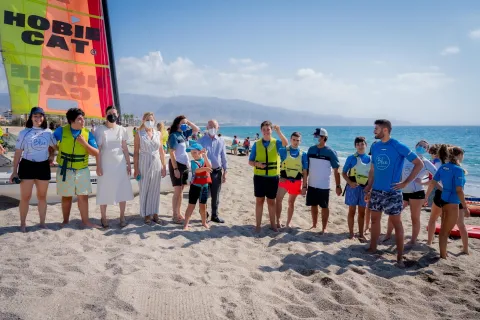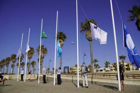 Izadas las banderas azules en Roquetas de Mar que apuesta por ser un municipio turístico seguro frente al Covid
