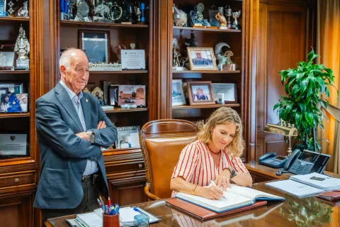 Ana Mestre visita el Ayuntamiento de Roquetas de Roquetas de Mar y firma en el Libro de Honor