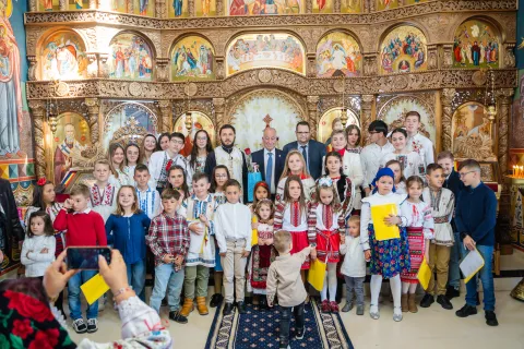 Amat asiste a la misa con motivo de la celebración del Día Nacional de la Madre en Rumanía en la basílica ortodoxa
