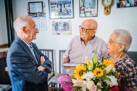 Amat entrega una distinción a Francisco Andújar, socio más antiguo de la Asociación de Mayores de La Gloria